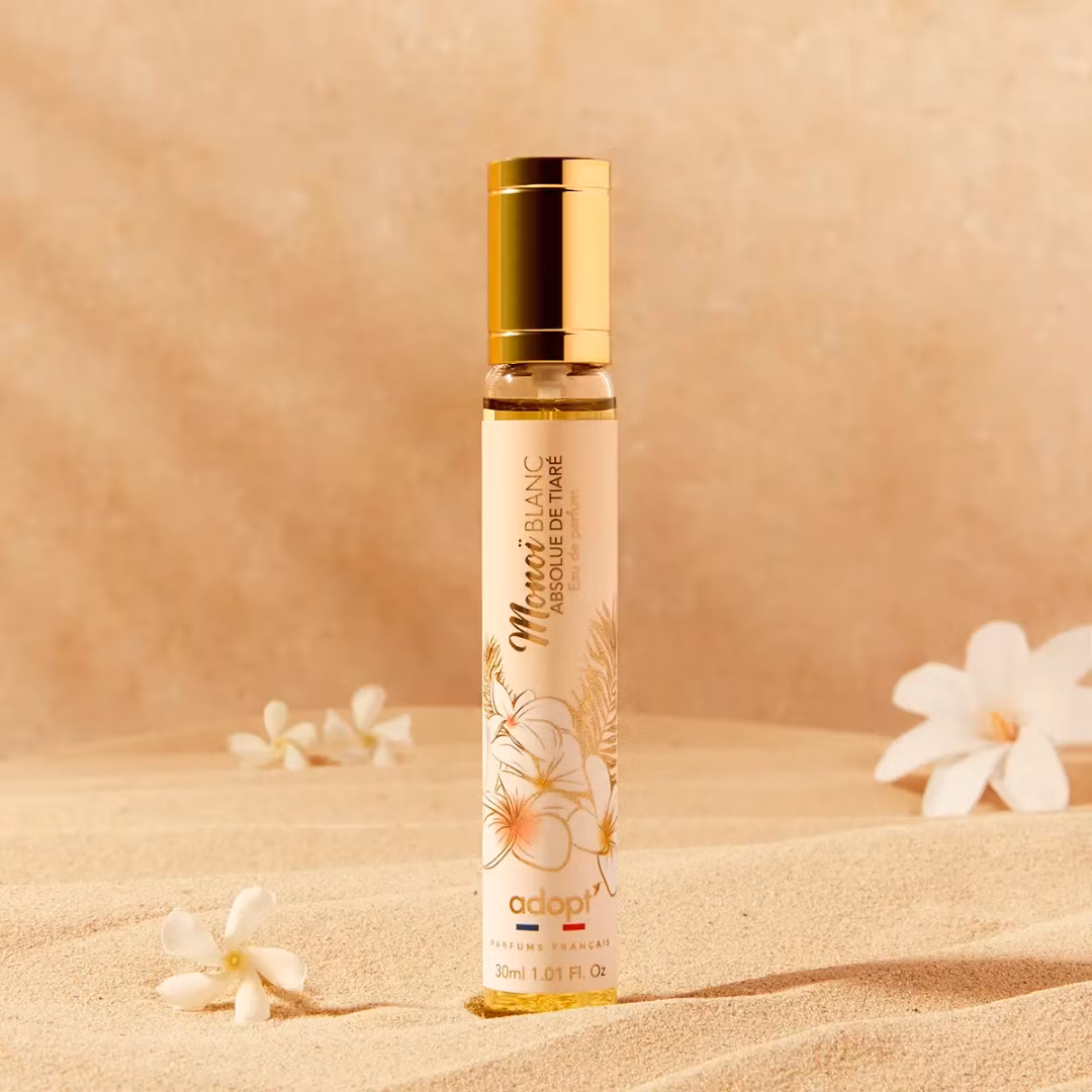 ADOPT parfums francais 30ml EDP Monoi blancMed Monoï Blanc kan du upptäcka de blommiga, gnistrande och eleganta aspekterna av monoï. En veritabel ode till somma