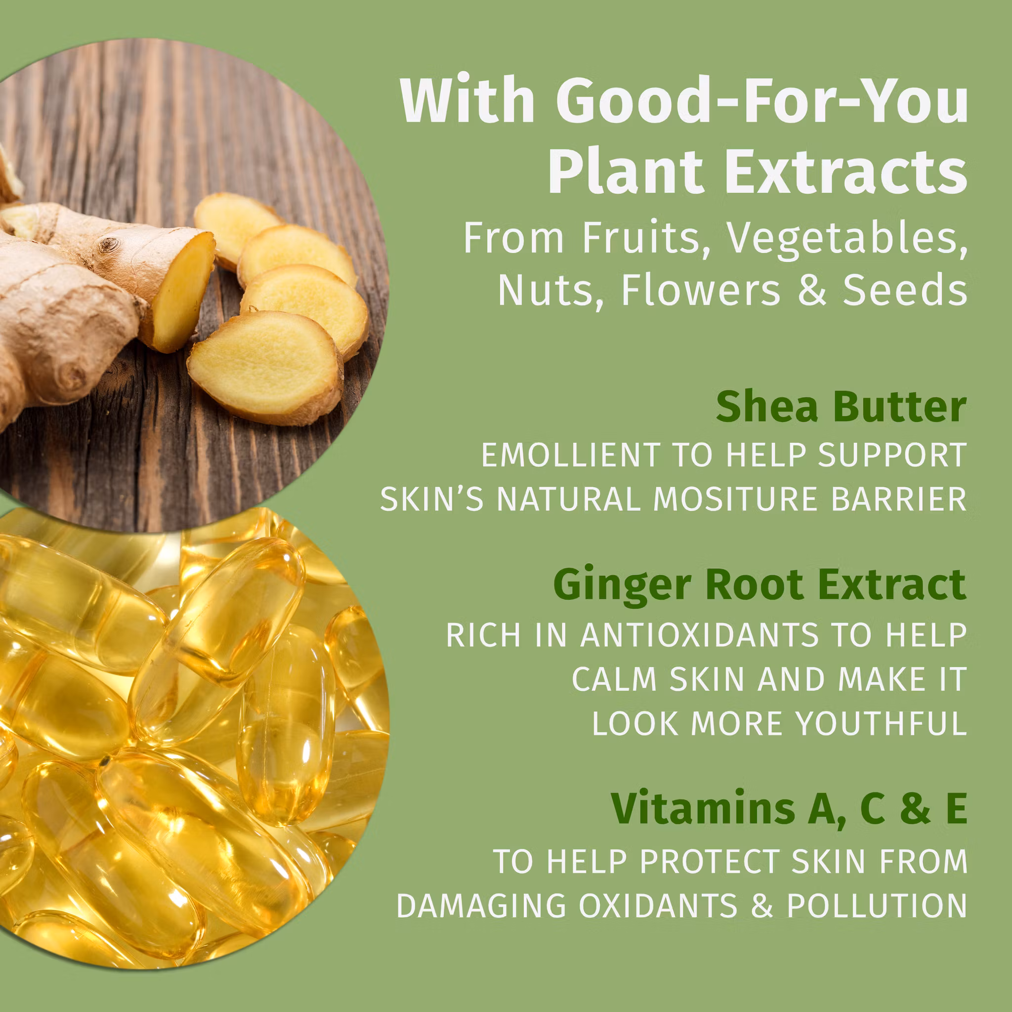 Water/Aqua/Eau, Isopropyl Palmitate, Butylene Glycol, Propanediol, Glycerin, Butyrospermum Parkii (Shea) Butter, Dimethicone, Sorbitan Stearate, Stearic Acid, Glyceryl Stearate, PEG-100 Stearate, Seed Oil, Helianthus Annuus (Sunflower) Seed Oil, Aloe Barbadensis Leaf Juice, Chamomilla Recutita (Matricaria) Flower Extract, Cucumis Sativus (Cucumber) Fruit Extract, Panax Ginseng Root Extract, Zingiber Officinale (Ginger) Root Extract, Leuconostoc/Radish Root Ferment Filtrate, Phenoxyethanol, Cetyl Alcohol, Fragrance (Parfum), Polysorbate 40, Benzyl Benzoate, Nylon-12, Carbomer, Chlorphenesin, Ethylhexylglycerin, Aminomethyl Propanol, Trisodium Ethylenediamine Disuccinate, Benzyl Cinnamate, Hexyl Cinnamal, Citronellol, Amyl Cinnamal, Eugenol, Methyl 2-Octynoate, Ascorbic Acid, Tocopheryl Acetate, Yellow 5 (CI 19140), Red 4 (CI 14700), Phospholipids, Pantothenic Acid, Tocopherol, Citric Acid, Potassium Sorbate, Sodium Benzoate
