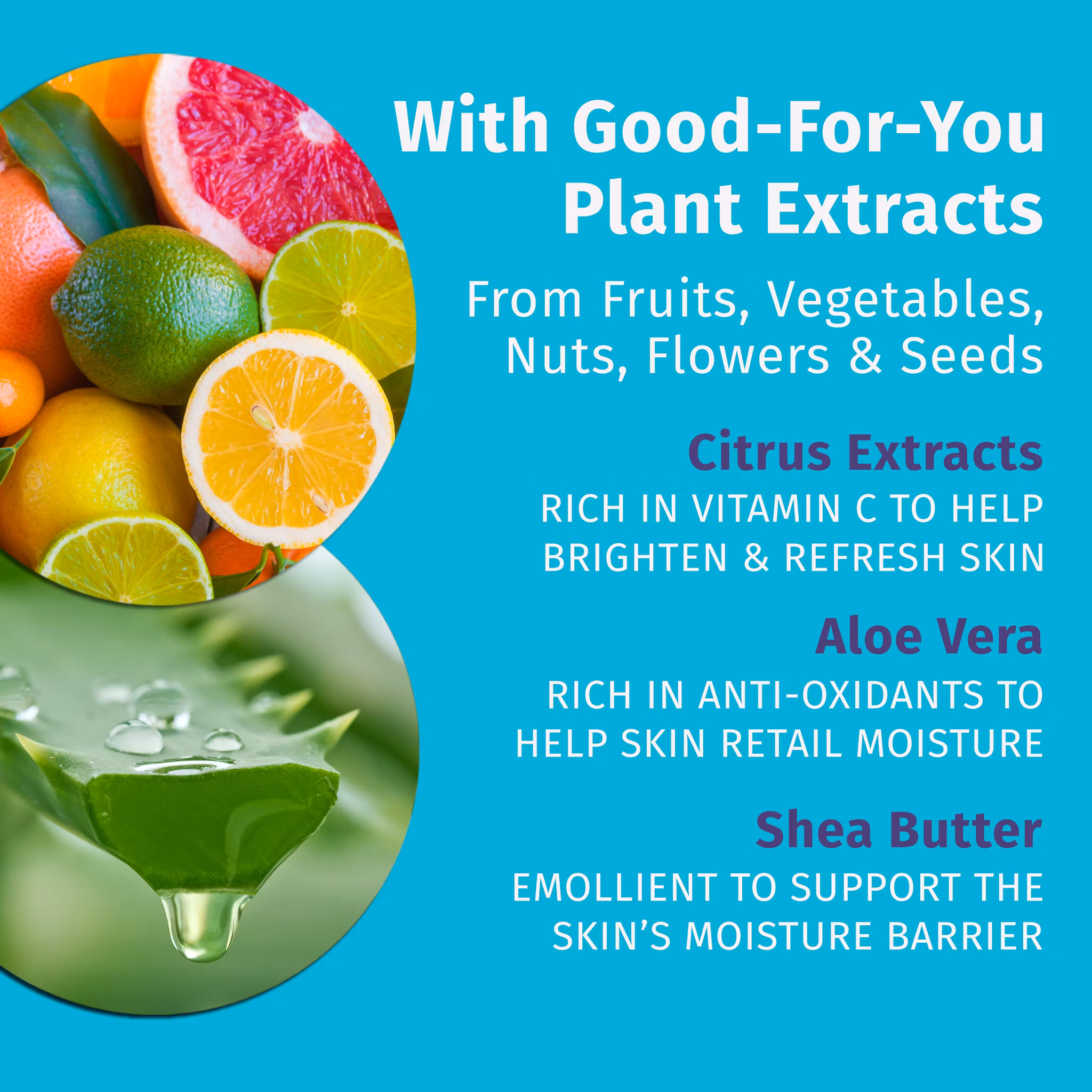 Formulan är berikad med citrusextrakt rika på C-vitamin, som inte bara ger huden klarhet och naturlig lyster, utan också hjälper till att jämna ut hudtonen, stimulera kollagenproduktionen och främja hudens fasthet. C-vitamin fungerar dessutom som en kraftfull antioxidant som skyddar huden mot fria radikaler och miljörelaterad stress, vilket bidrar till att motverka tidiga ålderstecken och bevara en ungdomlig hud. Tillsammans med lugnande aloe vera, rik på antioxidanter och fuktbevarande egenskaper, återställs hudens balans och irritation dämpas. Närande sheasmör mjukgör och främjar hudens skyddsbarriär för en silkeslen känsla hela dagen.