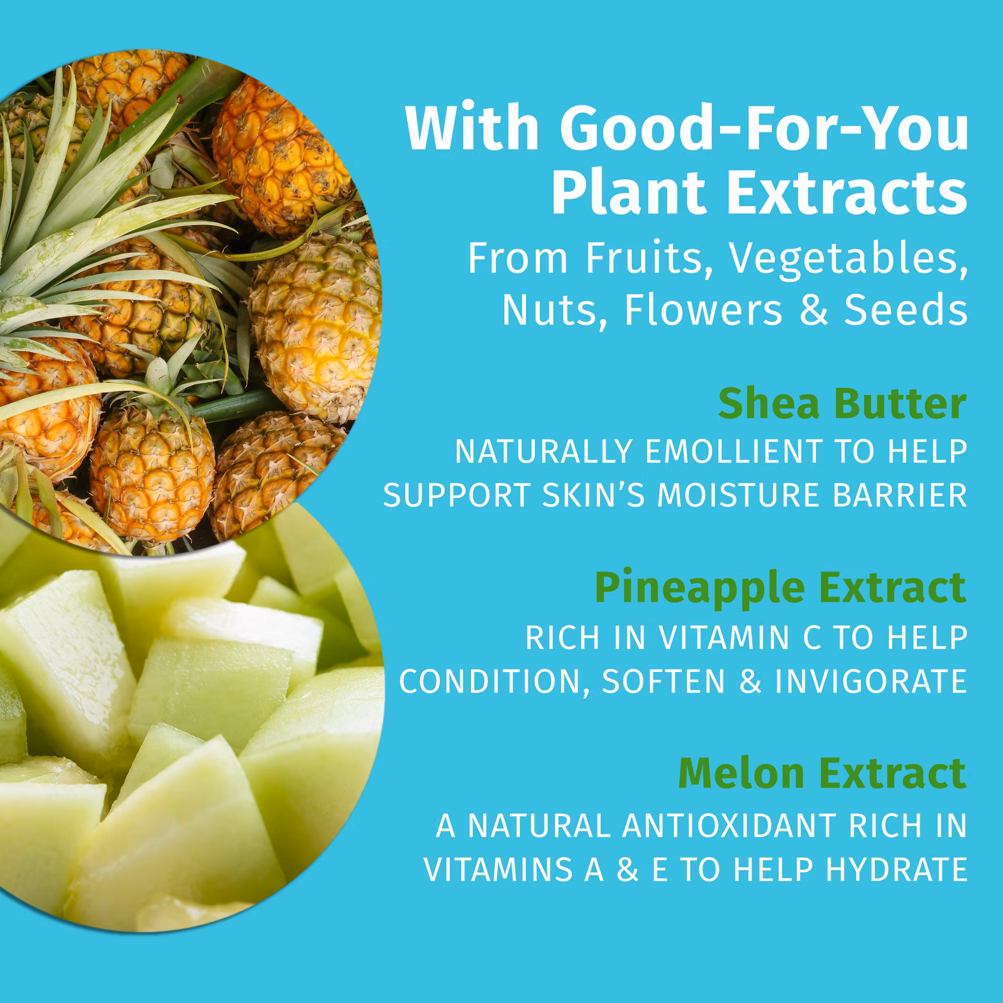 Ananasextrakt, rikt på vitamin C, hjälper till att mjukgöra och vitalisera huden, medan honungsmelonextrakt, naturligt rikt på antioxidanterna vitamin A och E, bidrar till att återfukta, skydda och ge huden en fräsch lyster. Sheasmör mjukar upp huden, vårdar på djupet och skyddar mot fria radikaler. Tillsammans skapar dessa ingredienser en exotisk formula som stärker, reparerar och lämnar huden silkeslen.